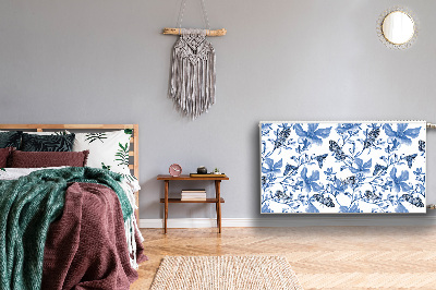 Decoratieve radiatormat Blauwe bloemen heeft een magneet aan de binnenkant, zodat je hem gemakkelijk aan de radiator kunt bevestigen. Aan de zichtbare buitenzijde is een geselecteerd patroon gemaakt met behulp van een moderne drukmethode.