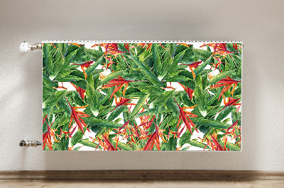 Decoratieve radiatormat Exotische bloemen heeft een magneet aan de binnenkant, zodat je hem gemakkelijk aan de radiator kunt bevestigen. Aan de zichtbare buitenzijde is een geselecteerd patroon gemaakt met behulp van een moderne drukmethode.