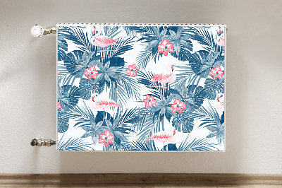 Decoratieve radiatormat Flamingo's en vlekken heeft een magneet aan de binnenkant, zodat je hem gemakkelijk aan de radiator kunt bevestigen. Aan de zichtbare buitenzijde is een geselecteerd patroon gemaakt met behulp van een moderne drukmethode.