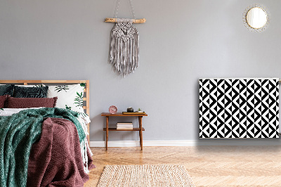 Decoratieve radiatormat Geometrische illusie heeft een magneet aan de binnenkant, zodat je hem gemakkelijk aan de radiator kunt bevestigen. Aan de zichtbare buitenzijde is een geselecteerd patroon gemaakt met behulp van een moderne drukmethode.