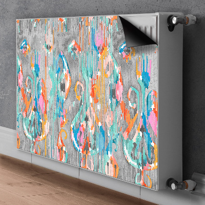Decoratieve radiatormat Graffiti heeft een magneet aan de binnenkant, zodat je hem gemakkelijk aan de radiator kunt bevestigen. Aan de zichtbare buitenzijde is een geselecteerd patroon gemaakt met behulp van een moderne drukmethode.