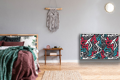 Decoratieve radiatormat Graffiti heeft een magneet aan de binnenkant, zodat je hem gemakkelijk aan de radiator kunt bevestigen. Aan de zichtbare buitenzijde is een geselecteerd patroon gemaakt met behulp van een moderne drukmethode.