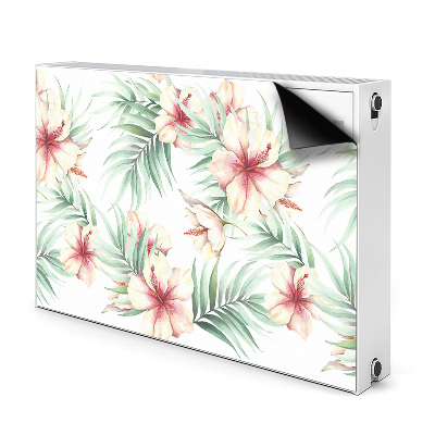 Decoratieve radiatormat Hawaiiaanse bloemen heeft een magneet aan de binnenkant, zodat je hem gemakkelijk aan de radiator kunt bevestigen. Aan de zichtbare buitenzijde is een geselecteerd patroon gemaakt met behulp van een moderne drukmethode.