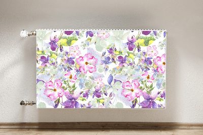 Decoratieve radiatormat Paarse bloemen heeft een magneet aan de binnenkant, zodat je hem gemakkelijk aan de radiator kunt bevestigen. Aan de zichtbare buitenzijde is een geselecteerd patroon gemaakt met behulp van een moderne drukmethode.