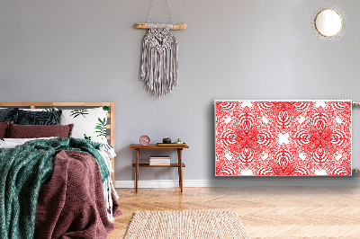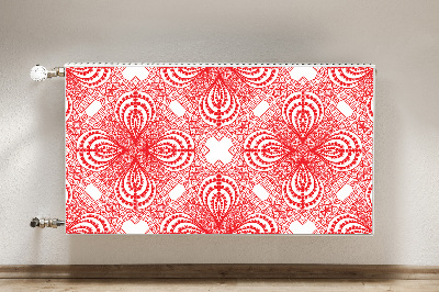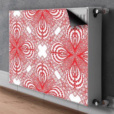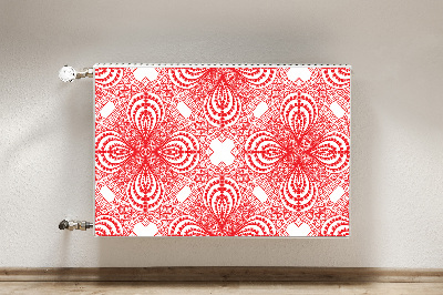 Decoratieve radiatormat Rood kanten heeft een magneet aan de binnenkant, zodat je hem gemakkelijk aan de radiator kunt bevestigen. Aan de zichtbare buitenzijde is een geselecteerd patroon gemaakt met behulp van een moderne drukmethode.
