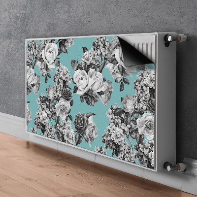Decoratieve radiatormat Zwart-witte rozen heeft een magneet aan de binnenkant, zodat je hem gemakkelijk aan de radiator kunt bevestigen. Aan de zichtbare buitenzijde is een geselecteerd patroon gemaakt met behulp van een moderne drukmethode.