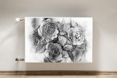 Decoratieve radiatormat Zwart-witte rozen heeft een magneet aan de binnenkant, zodat je hem gemakkelijk aan de radiator kunt bevestigen. Aan de zichtbare buitenzijde is een geselecteerd patroon gemaakt met behulp van een moderne drukmethode.
