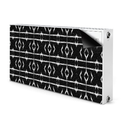 Decoratieve radiatormat Zwarte abstractie heeft een magneet aan de binnenkant, zodat je hem gemakkelijk aan de radiator kunt bevestigen. Aan de zichtbare buitenzijde is een geselecteerd patroon gemaakt met behulp van een moderne drukmethode.