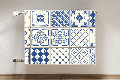 Magnetische bedrukte mat Blauwe tegels heeft een magneet aan de binnenkant, zodat je hem gemakkelijk aan de radiator kunt bevestigen. Aan de zichtbare buitenzijde is een geselecteerd patroon gemaakt met behulp van een moderne drukmethode.