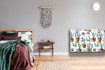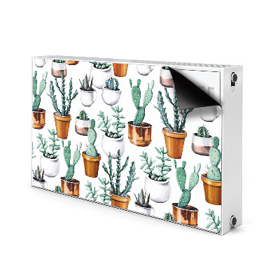Magnetische bedrukte mat Cacti in potten heeft een magneet aan de binnenkant, zodat je hem gemakkelijk aan de radiator kunt bevestigen. Aan de zichtbare buitenzijde is een geselecteerd patroon gemaakt met behulp van een moderne drukmethode.