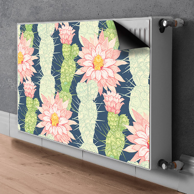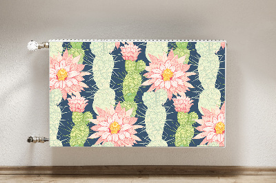 Magnetische bedrukte mat Cactusbloemen heeft een magneet aan de binnenkant, zodat je hem gemakkelijk aan de radiator kunt bevestigen. Aan de zichtbare buitenzijde is een geselecteerd patroon gemaakt met behulp van een moderne drukmethode.