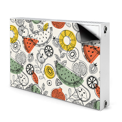 Magnetische bedrukte mat Fruitcontouren heeft een magneet aan de binnenkant, zodat je hem gemakkelijk aan de radiator kunt bevestigen. Aan de zichtbare buitenzijde is een geselecteerd patroon gemaakt met behulp van een moderne drukmethode.
