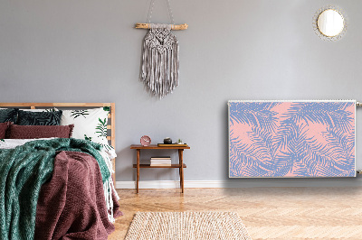 Magnetische mat voor de radiator Blauwe bladeren heeft een magneet aan de binnenkant, zodat je hem gemakkelijk aan de radiator kunt bevestigen. Aan de zichtbare buitenzijde is een geselecteerd patroon gemaakt met behulp van een moderne drukmethode.