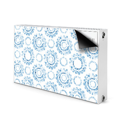 Magnetische mat voor de radiator Blauwe wielen heeft een magneet aan de binnenkant, zodat je hem gemakkelijk aan de radiator kunt bevestigen. Aan de zichtbare buitenzijde is een geselecteerd patroon gemaakt met behulp van een moderne drukmethode.