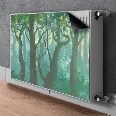 Magnetische mat voor de radiator Donker bos heeft een magneet aan de binnenkant, zodat je hem gemakkelijk aan de radiator kunt bevestigen. Aan de zichtbare buitenzijde is een geselecteerd patroon gemaakt met behulp van een moderne drukmethode.