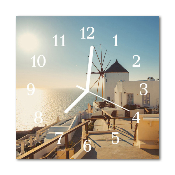 Vierkante glazen klok Santorini