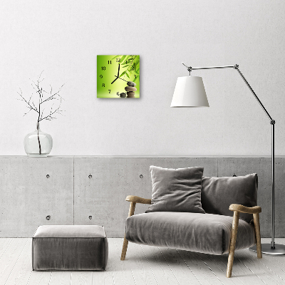 Vierkante glazen wandklok Bamboestenen