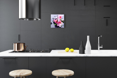 - Vierkante glazen wandklok Orchidee