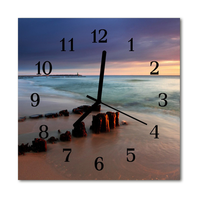 - Vierkante glazen wandklok Zee op het strand